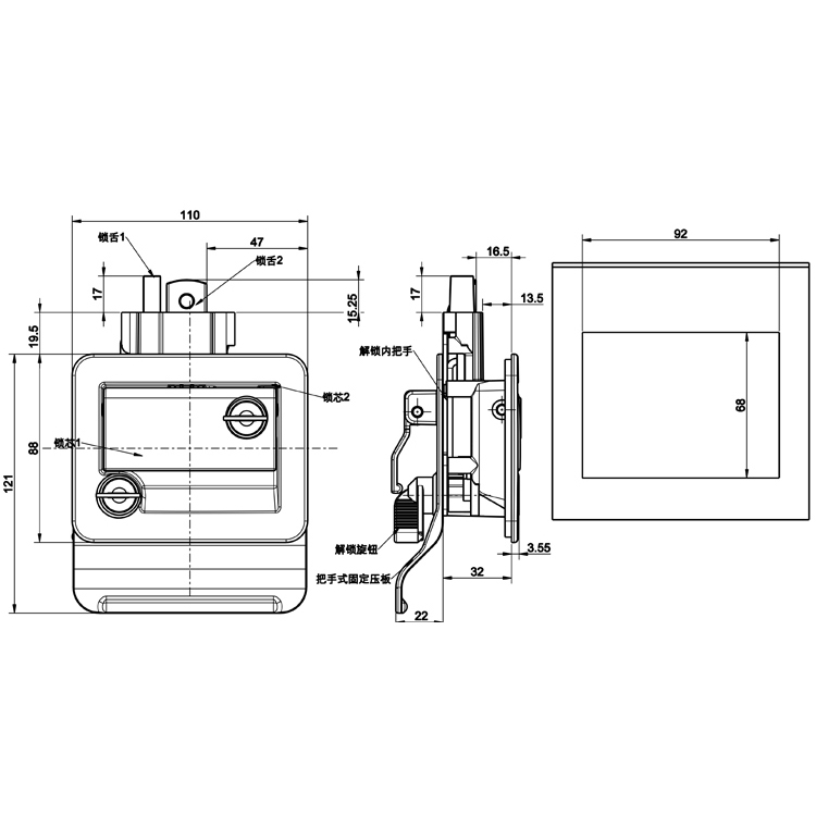 房車用內外雙開式舌頭鎖,鍍鉻-A7902-1116